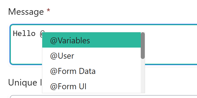- Start typing in a formula or expression field, and IntelliSense will automatically suggest available options.